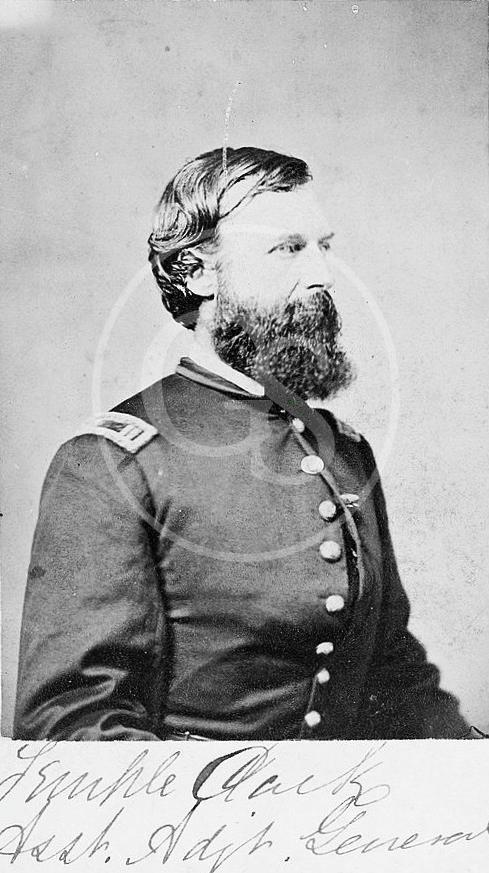 Assistant Adjutant General Temple Clark By Michael A. Peake Temple Clark was born October 23, 1826, in the Adirondack foothills near Utica, New York. In 1838, the family moved to Wisconsin, and when war erupted with Mexico, 20-year old Temple Clark enlisted in the 2nd Illinois Volunteers at St. Louis and served in the war. He returned to Wisconsin in 1847, and became a lawyer while maintaining a position in the Wisconsin militia. During this period he rose to the prominent position of Major General of the Eighth Division, organized from the counties of Manitowoc, Calumet, Brown and Kewaunee. With the outbreak of rebellion, Clark organized Company “A,” 5th Wisconsin Volunteers. Clark served as Assistant Adjutant General on General William S. Rosecrans’ staff. He received two wounds during the battle of Iuka and a gunshot through the lungs at the battle of Corinth that was thought to be mortal. He resigned due to disability on July 22, 1863. The reverse side of this photograph was signed “Faithfully yours, Temple Clark.” For Full Bio Click Here |