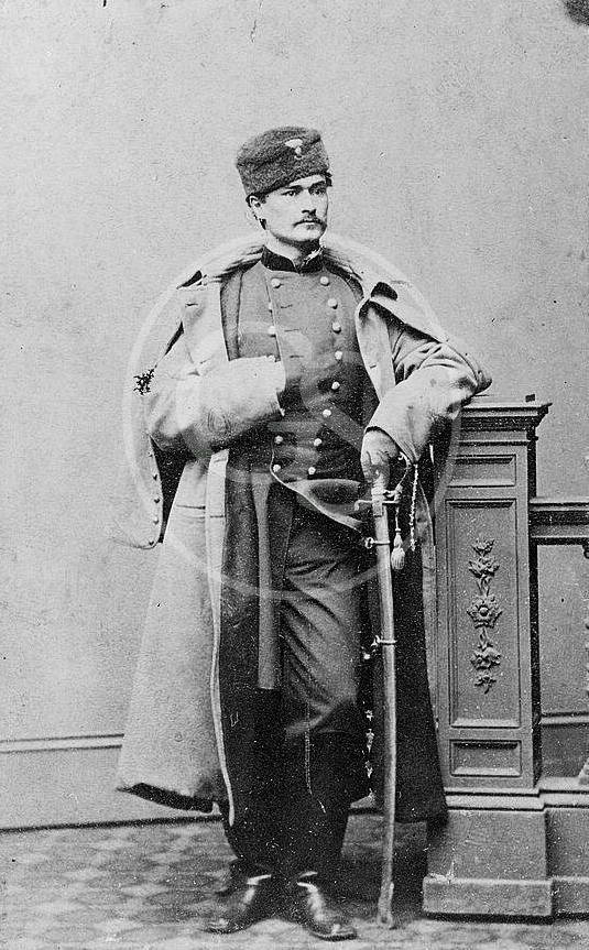 Captain Hubert Dilger, 1st Ohio Artillery By Michael A. Peake Hubert Anton Casimir Dilger was born to Dr. Eduard and Emmeline Duerr Dilger on March 5, 1836, in the village of Eugen, Germany. His early education as a cadet in the military academies led to service as lieutenant in the Grand Duke of Baden’s Horse Artillery, primarily at the garrisons of Karlsruhe and Rastatt, where he developed unique and unconventional artillery tactics emphasizing close support for infantry, rapid mobility, and accuracy and speed of fire. Dilger secured a leave of absence from the Duchy and traveled to America offering his services to the Union, first commanding 1st Battalion, Virginia Light Artillery under Major General John C. Frémont and later Battery “I,” 1st Ohio Artillery in Major General Franz Sigel’s 1st Army Corps, Army of Virginia. Dilger was awarded the Medal of Honor for his actions at the battle of Chancellorsville in May 1863. In the Western Theater, Dilger’s accuracy and speed with his guns became legendary. Nicknamed “Leatherbreeches” due to his preference for buckskin trousers, the dashing and handsome young man became a popular personality, and a life-long friend of Adolph Metzner. Dilger purchased property near Front Royal, Virginia, and lived out his life as a farmer. He died on May 4, 1911, and was buried at Rock Creek Cemetery in Washington D. C., beside his wife who passed in 1906. Portrait by C. D. Fredericks, Broadway, N. Y., Habana, Paris. Dilger included a personal message in German on the back of this photograph that reads, "On the fifth day of the siege of Atlanta July 25, 1864 to my highly regarded friend Metzner, Indiana. H. Dilger, nicknamed, Leatherbreeches. U. S. A." For Full Bio Click Here |